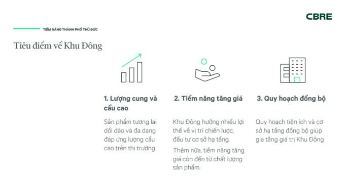 Chia sẻ về vấn đề này, bà Dương Thuỳ Dung – Giám đốc cấp cao CBRE Việt Nam cho hay người mua vẫn tiếp tục quan tâm đến bất động sản khu vực này mặc dù mặt bằng giá đã cao. Thậm chí, giá bất động sản thành phố Thủ Đức vẫn trên đà tăng trưởng, bất chấp dịch bệnh.