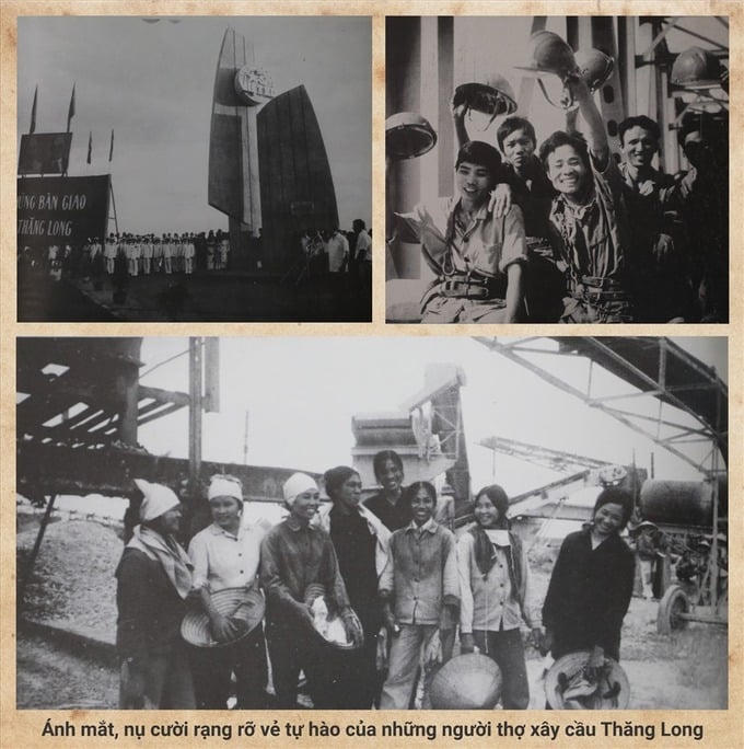 Đặc biệt, cây cầu này là lần đầu tiên người thợ thi công cầu Việt Nam và Liên Xô cùng thi công lắp cụm dầm thép. Còn có một giai thoại mà những người tham gia công tác thi công cầu nhắc đến là tự hào. Ngày Chủ tịch Phạm Văn Đồng đến thăm và gắn tấm biển đồng ghi tên "cầu Thăng Long", bác gặp và nói chuyện với anh chị em công nhân và chuyên gia Liên Xô đang làm việc tại cầu. Chủ tịch hỏi Trưởng đoàn chuyên gia Liên Xô: "Tôi nghe có người nói câu này Liên Xô làm là chính phải không?". Trưởng đoàn Liên Xô nói: "Cầu này anh em công nhân Việt Nam làm là chính, chuyên gia chỉ có 70 người còn công nhân của XNLH là 7.000 người, tỷ lệ 1/100. Cán bộ, công nhân Việt Nam rất giỏi"...