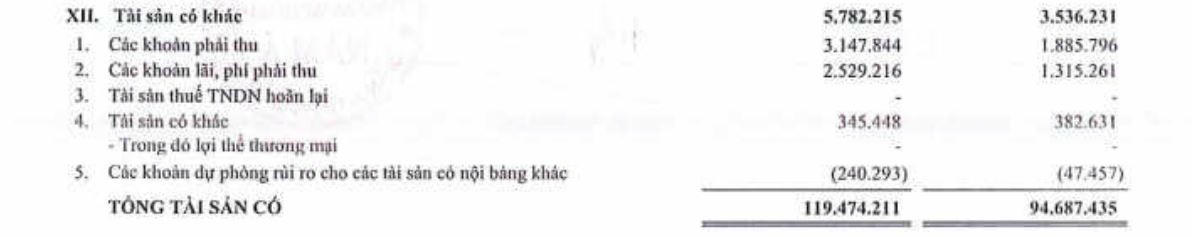 Theo báo cáo tài chính hợp nhất quý 3/2020, Nam A bank ghi nhận có 5.782 tỷ đồng tài sản có khác, tăng mạnh so với con số 3.536 tỷ đồng của thời điểm 31/12/2019. Trong đó, khoản lãi và phí phải thu (lãi dự thu) tăng vọt 92% so với cuối năm 2019, đạt 2.529 tỷ đồng (Lãi dự thu tại Nam A Bank có tốc độ tăng trưởng cao nhất hệ thống ngân hàng).