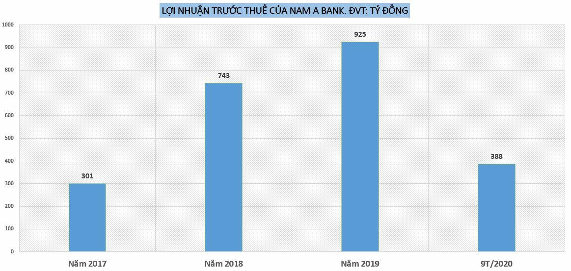 Trong 3 năm trở lại đây, kết quả kinh doanh của Nam A Bank có sự tăng trưởng đáng kể qua các năm từ 2017-2019, với lợi nhuận trước thuế năm 2019 tăng lên mức 925 tỷ đồng, gấp 3,1 lần so với con số 301 tỷ đồng lợi nhuận của năm 2017. Tỷ lệ nợ xấu được duy trì dưới mức 2%.