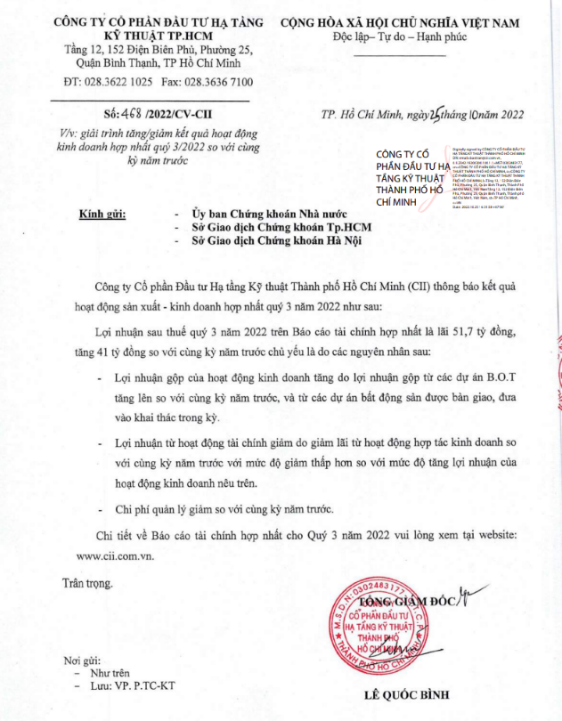 Theo giải trình của CII, trong quý, lợi nhuận từ các dự án BOT tăng lên so với cùng kỳ năm trước, các dự án bất động sản cũng được bàn giao và đưa vào khai thác trong kỳ.