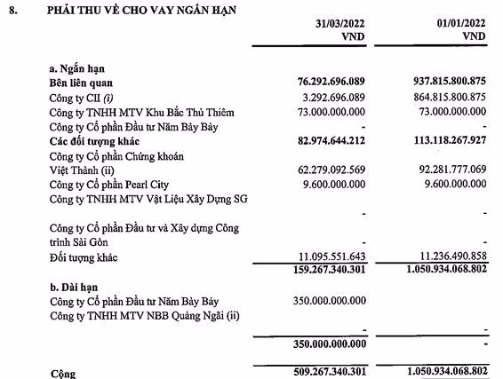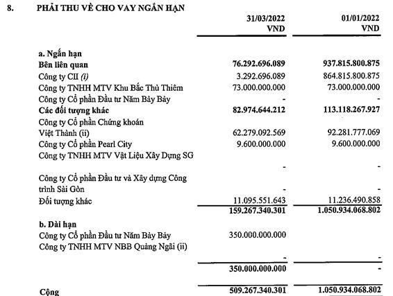 Một thông tin liên quan, BCTC quý 1/2022 ghi nhận tính đến hết năm 2021 CII E&C còn có khoản phải thu về cho vay ngắn hạn 937 tỷ đồng, trong đó có khoản cho CII vay gần 865 tỷ đồng theo hợp đồng hợp tác đầu tư từ tháng 10/2016 nhằm bổ sung nguồn vốn hoạt động kinh doanh, tối ưu hoá nguồn lực tài chính với tổng hạn mức 410 tỷ đồng, lãi suất 10%/năm. Khoản này đã được trả gần hết trong quý 1 vừa qua, giảm về còn số dư hơn 3 tỷ đồng đến cuối quý 1/2022.