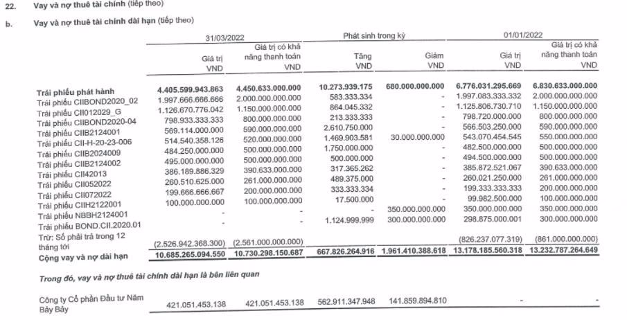 Hơn nữa, phần lớn các khoản vay và nợ thuê tài chính dài hạn, nợ vay từ trái phiếu tại CII đều đến hạn trả.