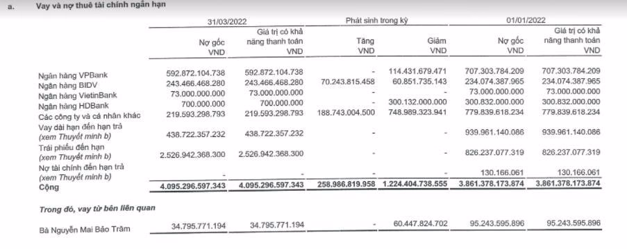Dù thoái bớt vốn, nhưng CII vẫn hỗ trợ vốn cho NBB thực hiện dự án, mà cụ thể là thông qua các khoản vay với số dư ghi nhận tại ngày 31/3/2022 lên tới 1.275 tỷ đồng.