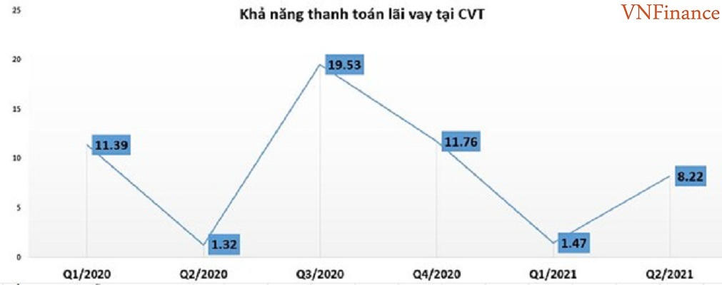 Đáng chú ý, khả năng thanh toán lãi vay tại CVT đang có dấu hiệu cải thiện song vẫn còn thấp so với các quý trước.