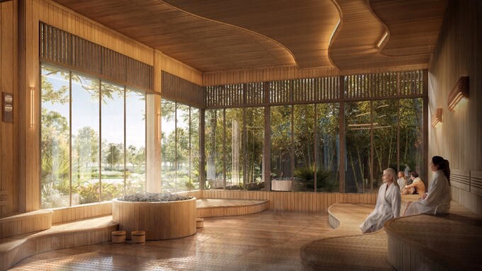 Tại Onsen Clubhouse, để gia tăng hiệu quả trị liệu, chủ đầu tư còn thiết kế các tổ hợp thành phần như 4 phòng xông hơi lớn được nghiên cứu chuyên sâu và thiết kế theo chủ đề: xông hơi thảo mộc, xông hơi đá muối, xông hơi nóng, xông hơi lạnh đáp ứng nhu cầu của nhiều cư dân cùng lúc; khu spa; ẩm thực với nhà hàng thực dưỡng phục vụ bữa ăn sau liệu trình trị liệu.
