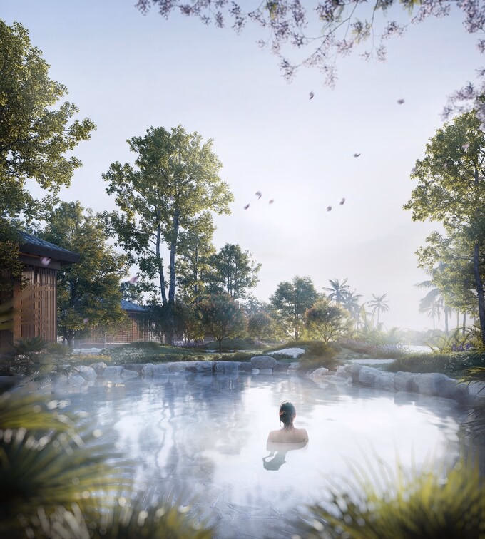 Tổ hợp Onsen Clubhouse cũng được thiết kế đặt giữa cảnh quan không gian nghệ thuật, giúp cư dân, du khách sống thư giãn, cảm xúc, lấy lại năng lượng sau một ngày lao động bận rộn. Để kết nối giữa các tiện ích thành phần, chủ đầu tư xây dựng các đường mòn nhỏ, nối liền giúp cư dân, khách du lịch có thể dạo chơi, khám phá và tận hưởng những điều tuyệt vời mà thiên nhiên mang lại.