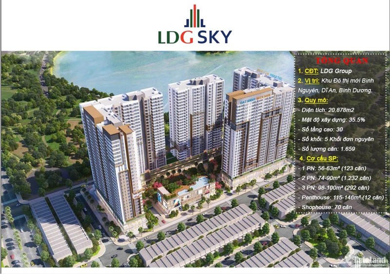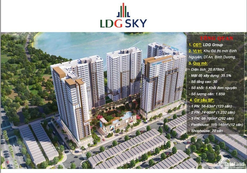 Theo như giới thiệu, dự án LDG Sky Bình Dương được hình thành trên quỹ đất lên đến 2ha trong Khu đô thị mới Bình Nguyên. LDG Sky được thiết kế với quy mô gồm 5 tháp là 5 khối đơn nguyên cao 30 tầng và cung cấp cho khu vực này khoảng 2.000 căn hộ.