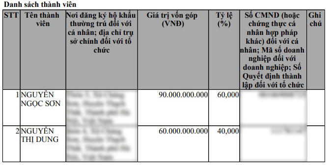 Tháng 5/2020, Công ty TNHH Tản Viên tiếp tục nâng vốn điều lệ từ 90 tỷ đồng lên thành 150 tỷ đồng. Trong đó, ông Nguyễn Ngọc Sơn góp 90 tỷ đồng và bà Nguyễn Thị Dung góp 60 tỷ đồng.