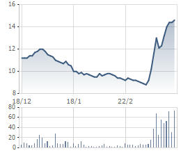 Cổ phiếu của Masan Resources từ ngày 1/3 – 18/3 đã tăng 67% từ mức giá 8.800 đồng lên 14.700 đồng khi giá vonfram đang có hướng đi lên từ 3 tháng nay.