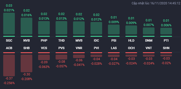 Thị trường chứng khoán phiên 16/11 bất ngờ giảm sâu vào cuối giờ giao dịch trước áp lực mạnh ở nhóm vốn hóa lớn. Nhóm cổ phiếu bất động sản cũng biến động tiêu cực theo xu hướng này.