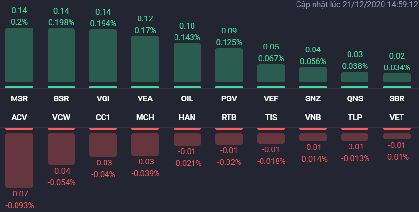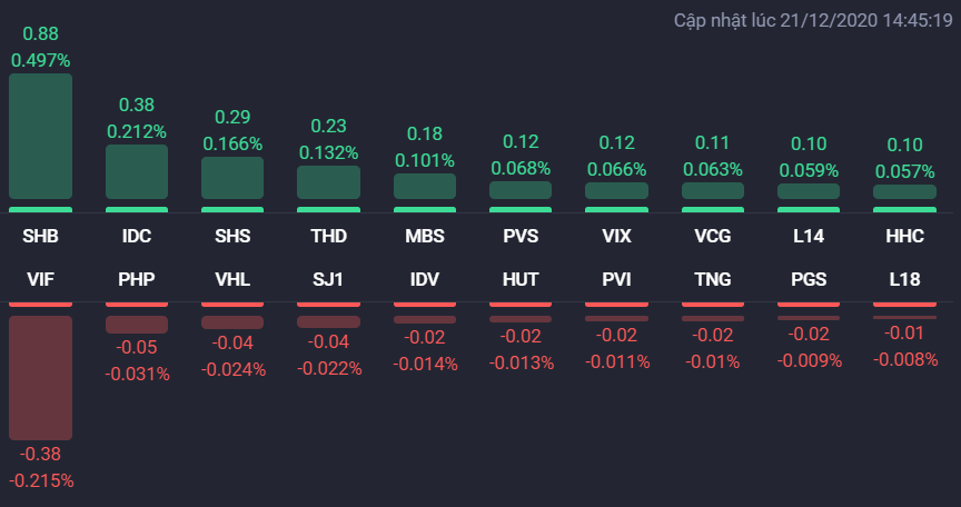 Bên cạnh đó, PDR cũng tăng 6,9% lên 46.750 đồng/cp. Phiên 21/12 là ngày giao dịch không hưởng quyền để PDR thực hiện lấy ý kiến cổ đông bằng văn bản. Nội dung lấy ý kiến là tạm ứng cổ tức đợt 2 năm 2020 bằng cổ phiếu cho cổ đông và các nội dung khác (nếu có).