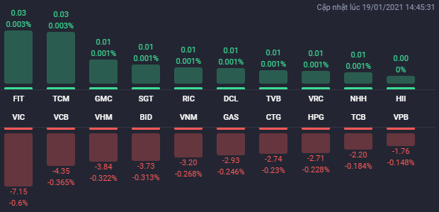 Phiên giao dịch ngày 19/1, thị trường chứng khoán Việt Nam diễn biến theo chiều hướng ít nhà đầu tư nào ngờ đến. VN-Index và UPCoM-Index biến động theo chiều hướng tiêu cực ngay từ đầu phiên giao dịch với sắc đỏ ở nhóm cổ phiếu vốn hóa lớn chiếm ưu thế.