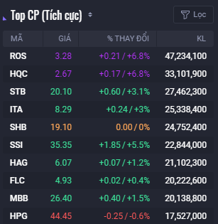 Chiều ngược lại, cũng có khá nhiều cổ phiếu bất động sản thanh khoản cao giảm sâu, trong đó, BII giảm 3,6%, CRE giảm 2,8%, OGC giảm 2%, TDH giảm 1,7%, DRH giảm 1,4%.
