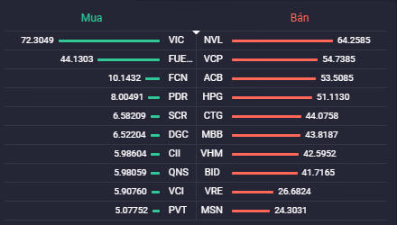 Khối ngoại đẩy mạnh bán ròng với giá trị gần 480 tỷ đồng. NVL đứng đầu danh sách bán ròng của khối ngoại với giá trị ở mức hơn 64 tỷ đồng. Hai cổ phiếu bất động sản khác là VHM và VRE bị bán ròng lần lượt 43 tỷ đồng và 27 tỷ đồng. Trong khi đó, VIC được mua ròng mạnh nhất với 72,3 tỷ đồng. PDR, SCR và CII là 3 cổ phiếu bất động sản khác cũng nằm trong danh sách 10 mã được khối ngoại mua ròng mạnh nhất.