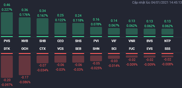 Ngoài ra, một số cổ phiếu bất động sản thanh khoản cao giảm giá trong phiên đầu năm 2021 còn có PVL, (-5,3%), CRE (-2,1%), HPX (-1,8%), NVL (-1,4%), LDG (-0,9%).