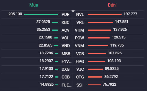 Tuy nhiên, tạo áp lực lớn nhất lên VN-Index không phải là nhóm dầu khí mà là các cổ phiếu nằm trong diện giảm tỷ trọng của 2 quỹ ETF V.N.M và FTSE như VCB, VRE, NVL, VHM. Trong đó, VCB giảm mạnh 3,4% xuống 94.200 đồng/cp, VRE giảm 2,9% xuống 34.000 đồng/cp, NVL giảm 2,7% xuống 79.000 đồng/cp, VHM giảm 1,9% xuống 97.800 đồng/cp.