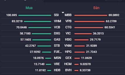 Khối ngoại vẫn giao dịch tích cực khi mua ròng gần 180 tỷ đồng trên toàn thị trường. Trong đó, VHM, DXG và VRE là 3 cổ phiếu bất động sản được khối ngoại mua ròng mạnh. VHM được mua ròng 83 tỷ đồng. DXG và VRE lần lượt là 59 tỷ đồng và 16 tỷ đồng. Chiều ngược lại, VIC là mã bất động sản duy nhất nằm trong top 10 về giá trị bán ròng của khối ngoại.