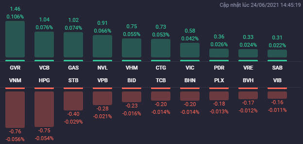 Thị trường biến động rung lắc trong phiên 24/6. Các cổ phiếu phiếu bất động sản như PDR, NVL, VIC, VHM hay VRE có đóng góp quan trọng trong việc giữ sắc xanh của VN-Index.