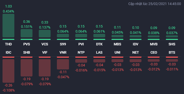 Cổ phiếu BĐS tiếp tục phân hóa trong phiên 25/2, THD giúp HNX-Index tăng mạnh