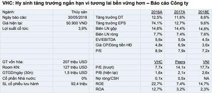 Định giá cổ phiếu VHC tỏ ra hấp dẫn so với các công ty khác trong ngành