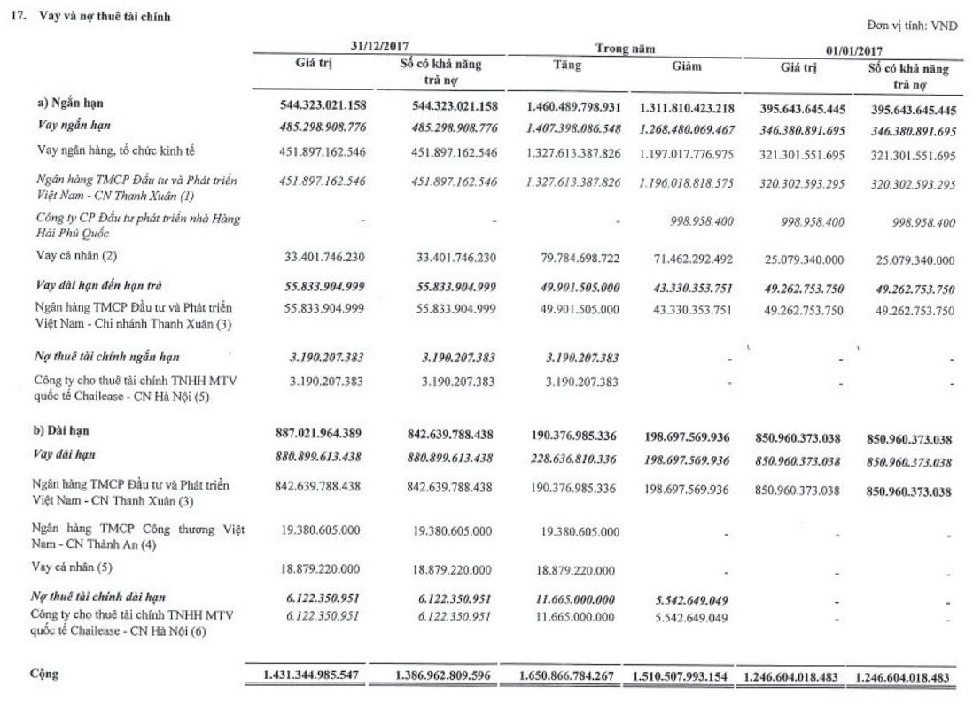 Đặc biệt, khoản vay và nợ thuê tài chính của CEO đã tăng 14,8% so với đầu năm lên mức 1.431 tỷ đồng. Trong số này, trừ một số khoản vay cá nhân, phần lớn nợ vay của CEO Group được tài trợ bởi Ngân hàng TMCP Đầu tư và Phát triển Việt Nam (BIDV) chi nhánh Thanh Xuân, bao gồm 4521,9 tỷ đồng vay ngắn hạn và 842,6 tỷ đồng vay dài hạn.