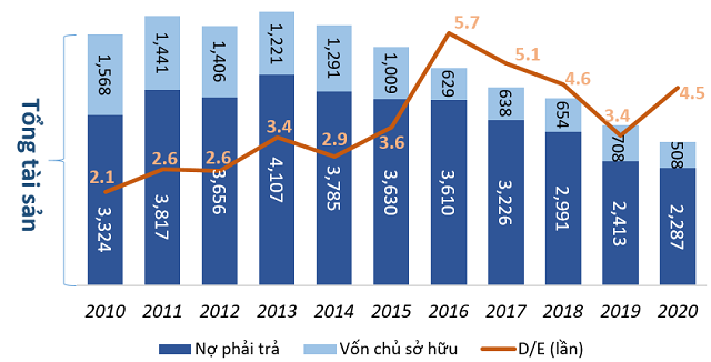 Về cơ cấu tài sản, hiện tại VOS đang sử dụng nguồn vốn vay khá lớn, gấp 4,5 lần vốn chủ sở hữu (năm 2020). Việc sử dụng đòn bẩy tài chính (D/E) ở mức cao trong khi tình trạng kinh doanh yếu kém sẽ khiến doanh nghiệp đối mặt với khá nhiều rủi ro.