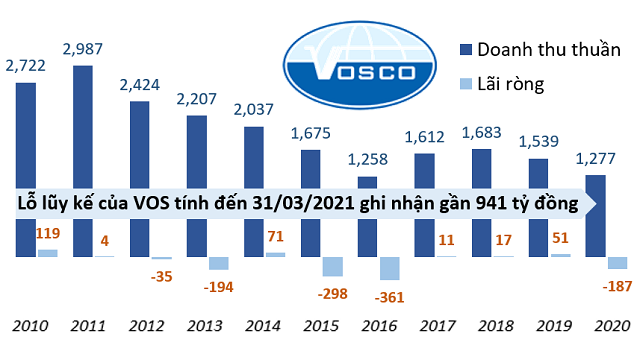 Khép lại quý đầu năm 2021, trong bối cảnh các doanh nghiệp cùng ngành lần lượt khoe thành tích, VOS lại khá xót xa khi lỗ lại tiếp tục chồng lỗ, nâng tổng lỗ lũy kế tính đến 30/03/2021 lên gần 941 tỷ đồng. Tuy nhiên, con số lỗ 19 tỷ đồng trong quý 1 đã cải thiện hơn nhiều so với cùng kỳ (lỗ 86 tỷ đồng).