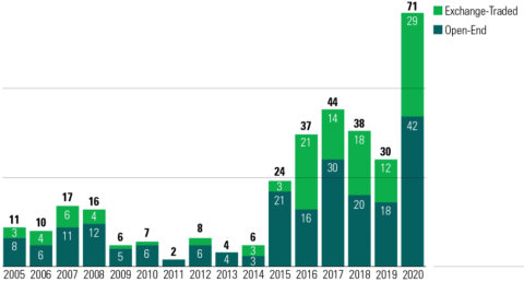 Riêng các quỹ ESG chiếm khoảng 1/4 lượng tiền chảy vào tất cả các quỹ tương hỗ, trái phiếu và cổ phiếu của Mỹ, đây là bước nhảy vọt lớn so với chỉ 1% vào năm 2014. Cũng trong năm 2020, tại Mỹ ghi nhận gần 400 quỹ đầu tư ESG, tăng 30%, đồng thời đã gấp 4 lần trong một thập kỷ. Nhà đầu tư tỏ ra hào hứng với khái niệm đầu tư ESG. Giờ đây, những lo ngại về sự phát triển bền vững có thể được giải quyết thông qua các khoản đầu tư có chọn lọc.