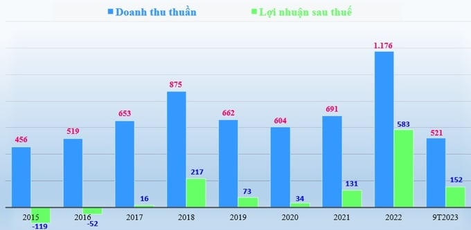 Trong 9 tháng đầu năm nay, công ty đạt 521 tỷ đồng doanh thu thuần và 152 tỷ đồng lợi nhuận sau thuế, giảm lần lượt 38,1% và 62,9% so với cùng kỳ năm trước.