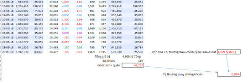 Dựa vào bảng trên ta có thể thấy được, tỷ suất Vòng quay Chứng khoán của ROS dao động khoảng 0.99%, vẫn không vượt quy định hiện tại của HOSE khi chọn cổ phiếu vào các Chỉ số chọn lọc như VN30, VN100… (Giá trị này không được thấp hơn 0,05%, tức là các mã giao dịch ít hơn 15 – 20 lần so với bình thường sẽ bị loại vì thanh khoản quá ít thì giá có khả năng sẽ biểu hiện không chính xác Giá trị của Doanh nghiệp do dễ dàng bị thao túng “làm giá”). Tuy nhiên, thực tế cổ phiếu này biến động khôn lường.