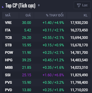 Thanh khoản trên hai sàn gia tăng so với phiên trước đó và cao hơn mức trung bình 20 phiên với giá trị giao dịch đạt 14.107 tỷ đồng, tương ứng với khối lượng giao dịch 677 triệu cổ phiếu, trong đó giao dịch thỏa thuận chiếm 2.662 tỷ đồng. VRE phiên 14/12 đứng đầu về khối lượng khớp lệnh toàn thị trường với 18 triệu cổ phiếu. ITA cũng là cổ phiếu bất động sản khác nằm trong top 10 mã khớp lệnh toàn thị trường với 16,3 triệu cổ phiếu.