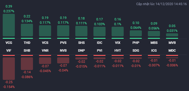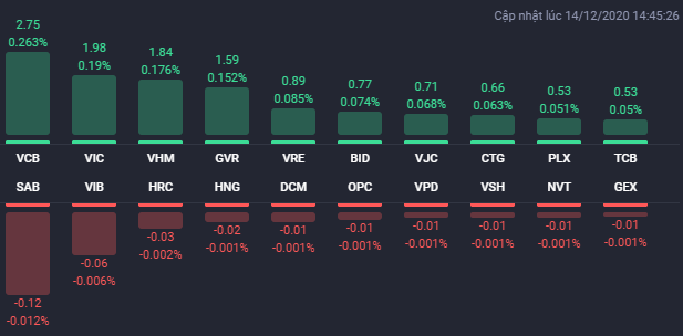 Phiên giao dịch ngày 14/12 diễn ra tích cực với sự bứt phá của nhiều cổ phiếu vốn hóa lớn, trong đó có bộ 3 cổ phiếu họ Vingroup.