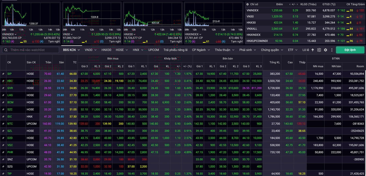 Tâm điểm sáng nay thuộc về nhóm cổ phiếu khu công nghiệp. Bên cạnh sự toả sáng của GVR tại nhóm vốn hoá lớn, các mã khác như PHR, DTD, SZC, VGC, IDC, LHG... cũng đồng loạt bứt phá trong khoảng 2–4%, với thanh khoản nhiều mã vượt trung bình 20 phiên – dấu hiệu rõ ràng cho thấy dòng tiền lớn đang dịch chuyển sang nhóm này trong bối cảnh triển vọng phát triển hạ tầng và thu hút FDI trở lại được đánh giá tích cực.