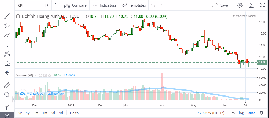 Trên thị trường chứng khoán, diễn biến giá cổ phiếu KPF không mấy tích cực. Kết thúc phiên giao dịch ngày 22/6/2022, KPF đạt thị giá 11.000 đồng/cp, giảm hơn 40% so với đỉnh giá hồi đầu năm nay. Điều này có thể sẽ khiến kế hoạch chào bán của KPF “đổ bể” bởi thị giá KPF hiện đang thấp hơn mức giá chào bán theo phương án mới nhất của doanh nghiệp là 13.000 đồng/cp…
