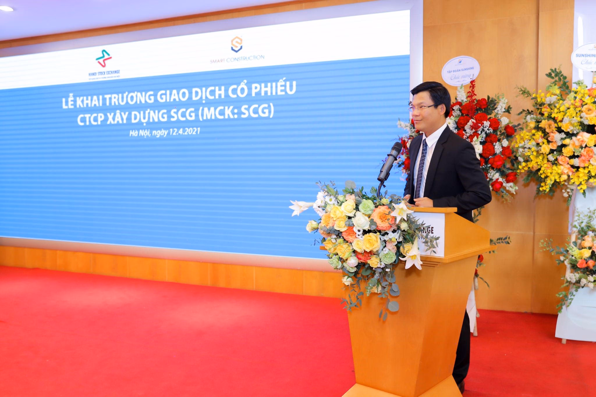 Phát biểu tại buổi lễ, ông Lê Văn Nam - TGĐ công ty CP Xây dựng SCG (Smart Construction Group) chia sẻ: "SCG trở thành công ty đại chúng và giao dịch cổ phiếu trên sàn chứng khoán là dấu mốc quan trọng trong lộ trình phát triển của doanh nghiệp, thể hiện năng lực, tính minh bạch và mang lại những giá trị gia tăng cho các cổ đông. Đồng thời, đại chúng hóa cũng là tiền đề tốt để thương hiệu SCG được quảng bá rộng rãi, nâng cao tính cạnh tranh và các cơ hội tiềm năng trong tương lai của công ty".