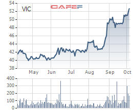 Cổ phiếu VIC đã tăng vọt trong vòng 1 tháng qua và đưa mức tăng trưởng của cổ phiếu tính từ tháng 3/2017 đến nay lên con số 20%. Theo bảng xếp hạng người giàu trên sàn chứng khoán của CAFEF, với số lượng cổ phiếu trị giá hơn 38.150 tỷ đồng (tương đương 1,7 tỷ USD), ông Phạm Nhật Vượng là người đứng đầu danh sách này.