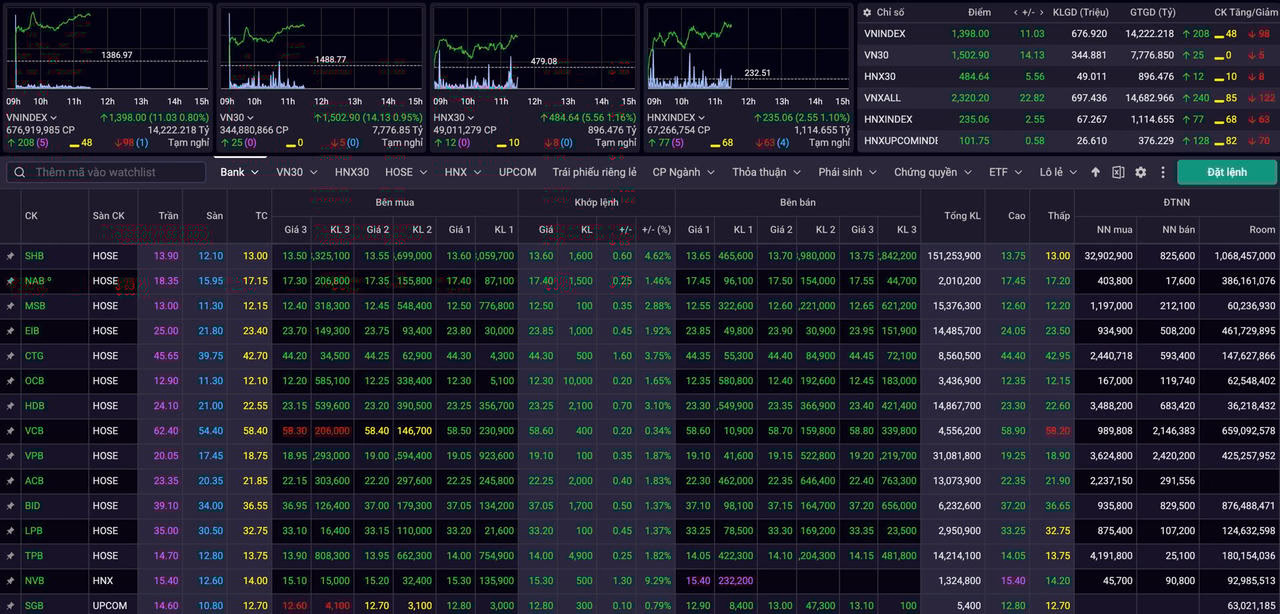 Với diễn biến tích cực đang lan tỏa, thị trường chứng khoán đang đứng trước cơ hội chinh phục ngưỡng 1.400 điểm ngay trong phiên chiều. Động lực tăng điểm được củng cố bởi dòng tiền mạnh và sự lan tỏa rộng khắp các nhóm ngành chủ chốt.