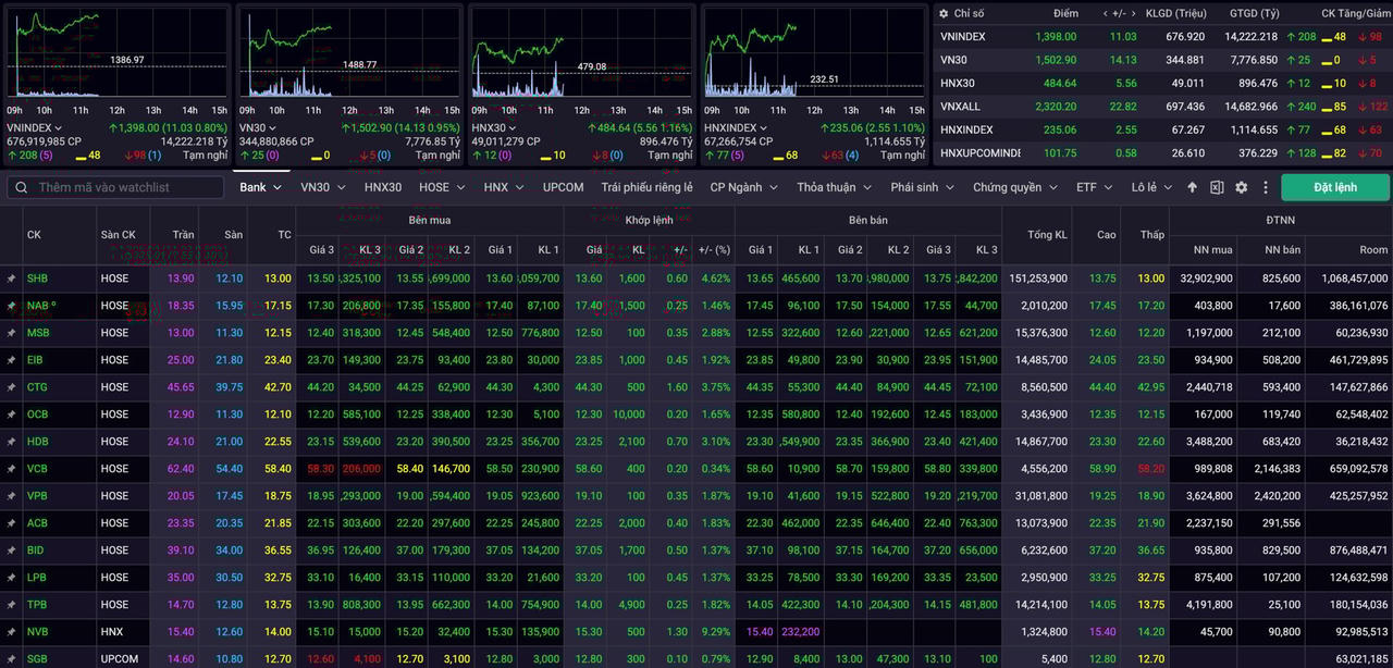 Với diễn biến tích cực đang lan tỏa, thị trường chứng khoán đang đứng trước cơ hội chinh phục ngưỡng 1.400 điểm ngay trong phiên chiều. Động lực tăng điểm được củng cố bởi dòng tiền mạnh và sự lan tỏa rộng khắp các nhóm ngành chủ chốt.