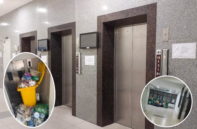 Ngoài cắt thang, công ty Nam Minh Hoàng cũng khoá thang rác, không vận chuyển rác từ ngày 17/7/2023. Công tác thu gom và xử lý rác cũng không được triển khai. Về nguyên nhân, cư dân nói với PV là do tháng máy hiện đã hết thời hạn bảo trì (thời gian hết hạn là 30/6/2023), còn hợp đồng bảo trì thang máy vận chuyển rác thải sinh hoạt cũng hết thời hạn hiệu lực vào ngày 15/7/2023. Lý do chưa bảo trì được công ty Nam Minh Hoàng đưa ra là không có kinh phí.