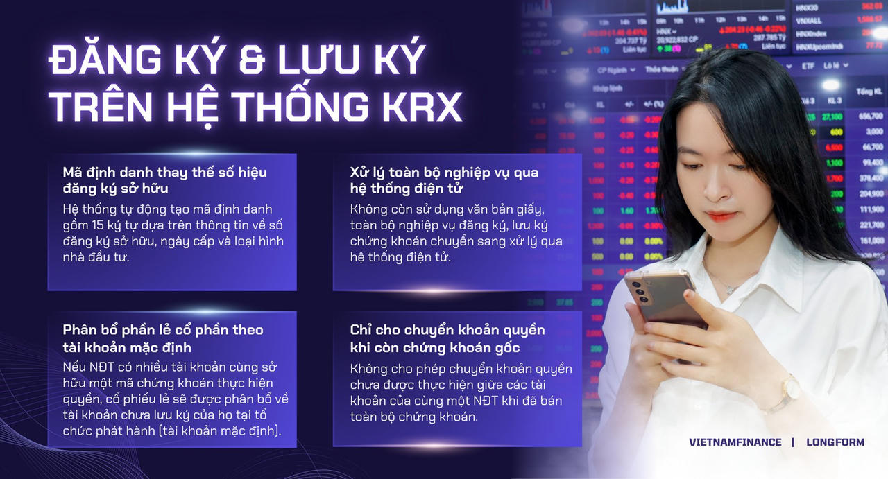 Một cải tiến khác là điện tử hoá toàn bộ quy trình đăng ký, lưu ký chứng khoán. Thay vì sử dụng đồng thời hai phương thức văn bản giấy và điện tử như hiện nay, hệ thống KRX sẽ xử lý qua điện tử đối với tất cả các nghiệp vụ đăng ký, lưu ký chứng khoán.