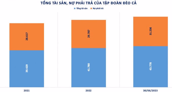 Báo cáo tài chính hợp nhất bán niên 2023 của Tập đoàn Đèo Cả ghi nhận tổng tài sản đạt 43.778 tỷ đồng, tăng 4,8% so với đầu năm. Trong đó, hàng tồn kho chỉ 2,7%, đạt gần 1.200 tỷ đồng. Trong khi đó, tài sản dài hạn chiếm tới hơn 85% tổng tài sản, đạt 37.289 tỷ đồng.