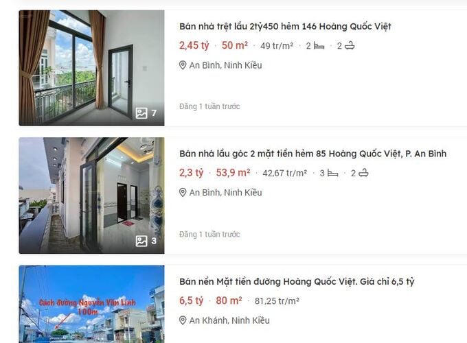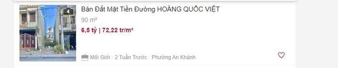 Tin rao bán đất tại đường Hoàng Quốc Việt trên các trang mua bán bất động sản.
