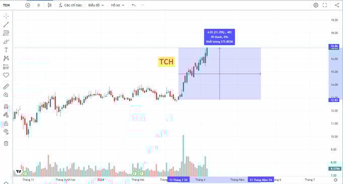 Cổ phiếu TCH tăng giá ấn tượng những ngày qua.