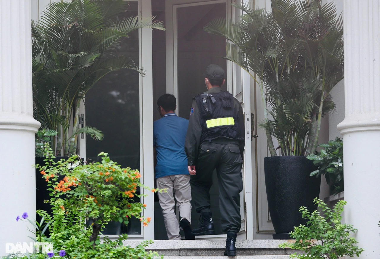 Theo ghi nhận, hơn 9h sáng, hàng chục cảnh sát cơ động, điều tra viên, kiểm sát viên... sau đó vào biệt thự, làm việc tại các phòng, tầng hầm.