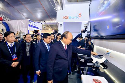 Thủ tướng Nguyễn Xuân Phúc, Bộ trưởng Nguyễn Chí Dũng cùng các lãnh đạo cấp cao ghé thăm khu vực trưng bày của Sunshine Group |