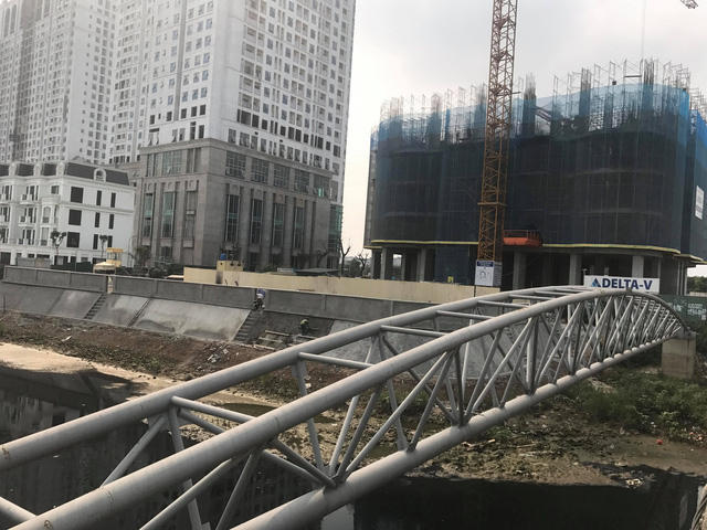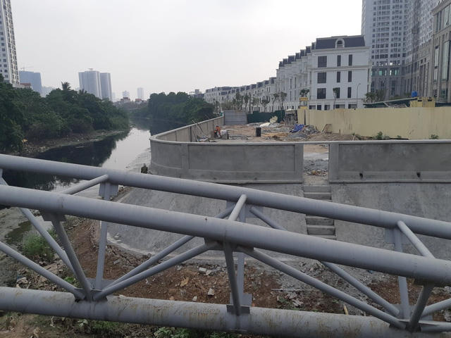 Điểm ngoài cùng của kè tạm cách mố cầu trong cùng của cầu Mộ Lao trên dưới 50m. Điều này đồng nghĩa với việc công trình tạm của Công ty Quang Minh đang lấn ra lòng sông Nhuệ hàng chục mét.
