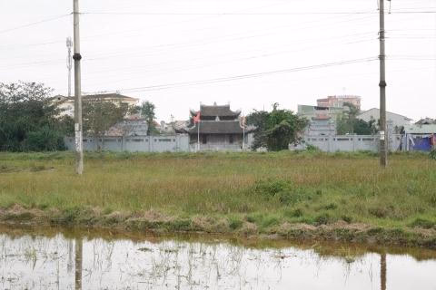 | Từ phía ngoài nhìn vào cổng chính Văn miếu Hà Tĩnh khi chưa có đường vào. Ảnh: Lao động |
