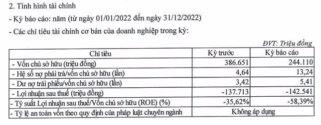 | Kết thúc năm 2022, hệ số nợ phải trả/vốn chủ sở hữu của Công ty Biển Đông là 13,24 lần. |