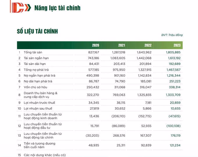Năm 2020, vốn chủ sở hữu của Công ty Chương Dương ghi nhận đạt hơn 250 tỷ đồng trong khi đó tổng nợ phải trả đạt hơn 577 tỷ đồng. Đến năm 2023, vốn chủ sở hữu chỉ có sự gia tăng nhẹ lên hơn 339 tỷ đồng, trong khi tổng nợ phải trả gần 1.500 tỷ đồng.